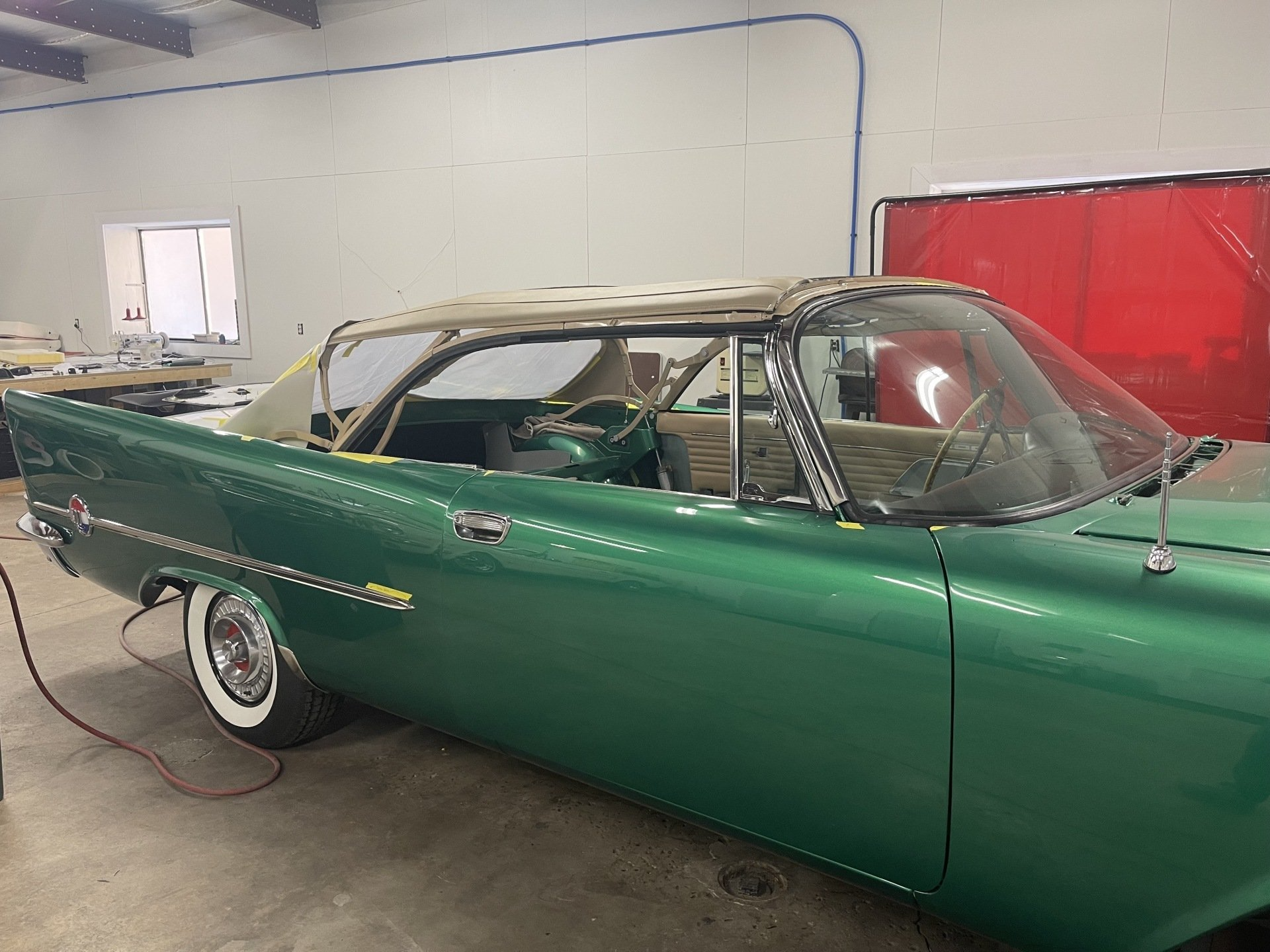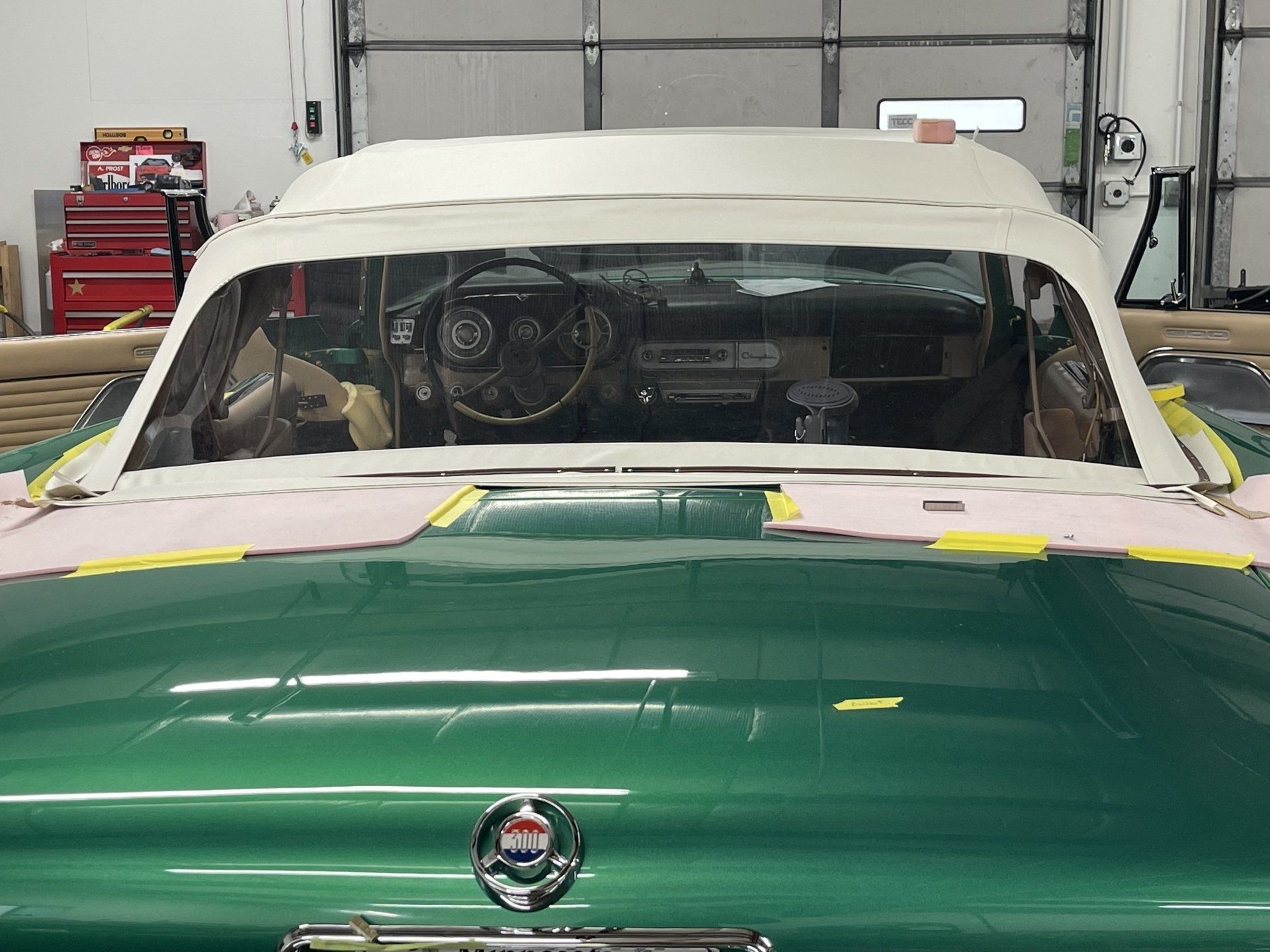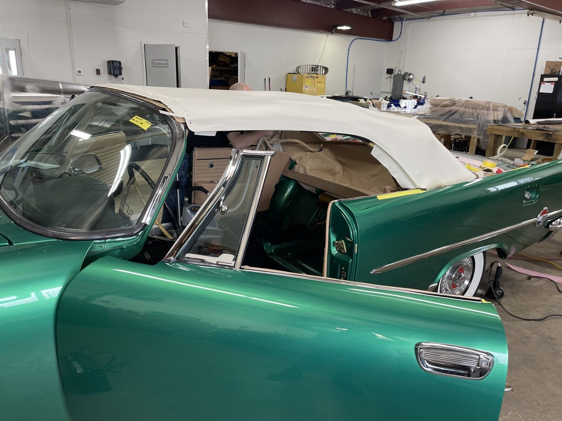 The convertible top was ordered in custom colors to coordinate with its custom paint color.