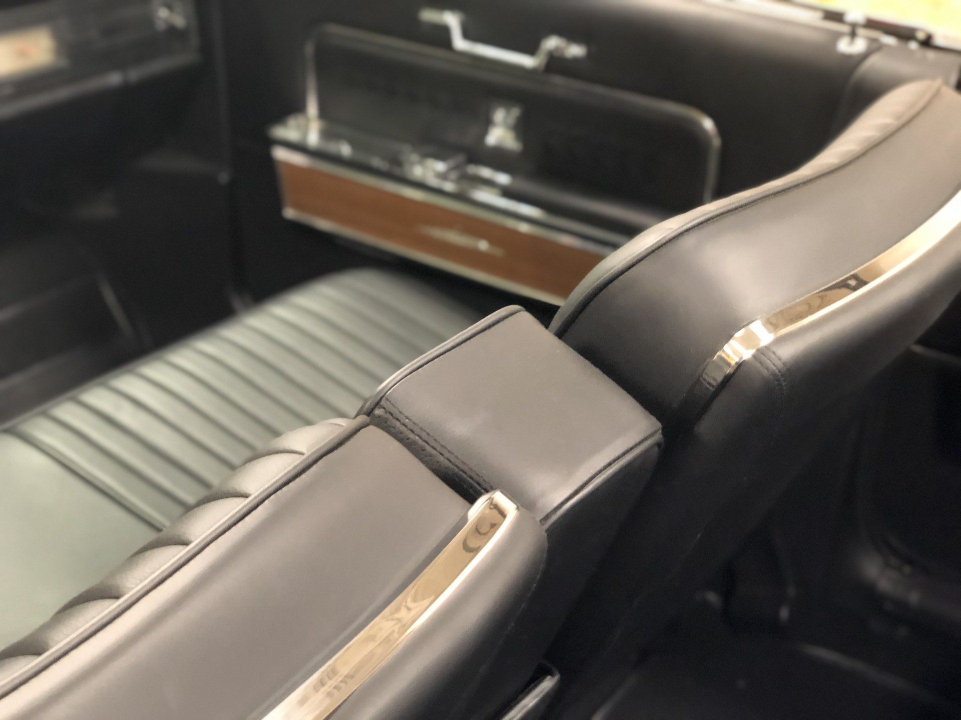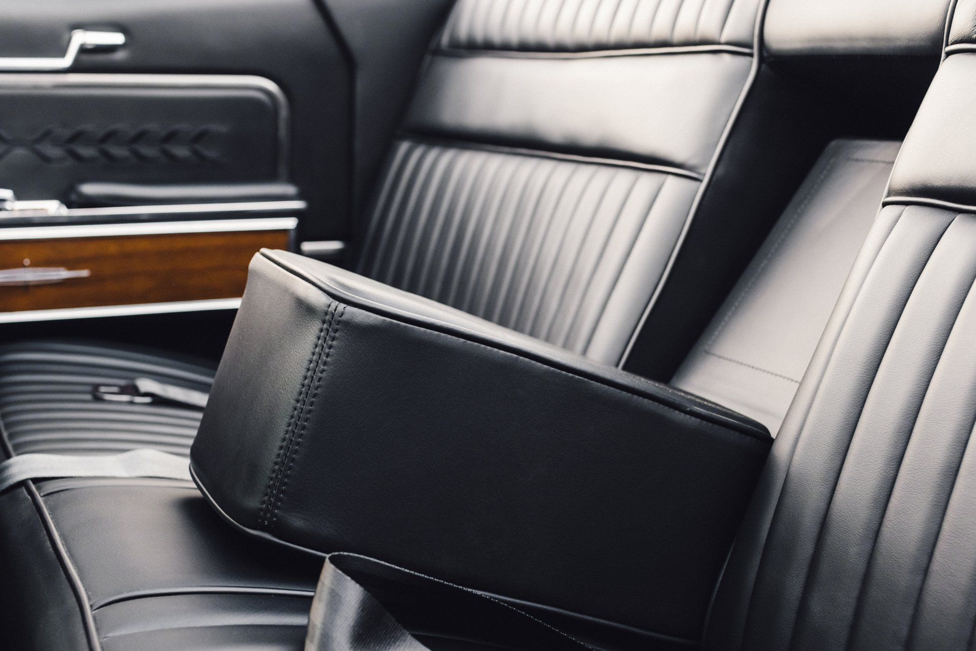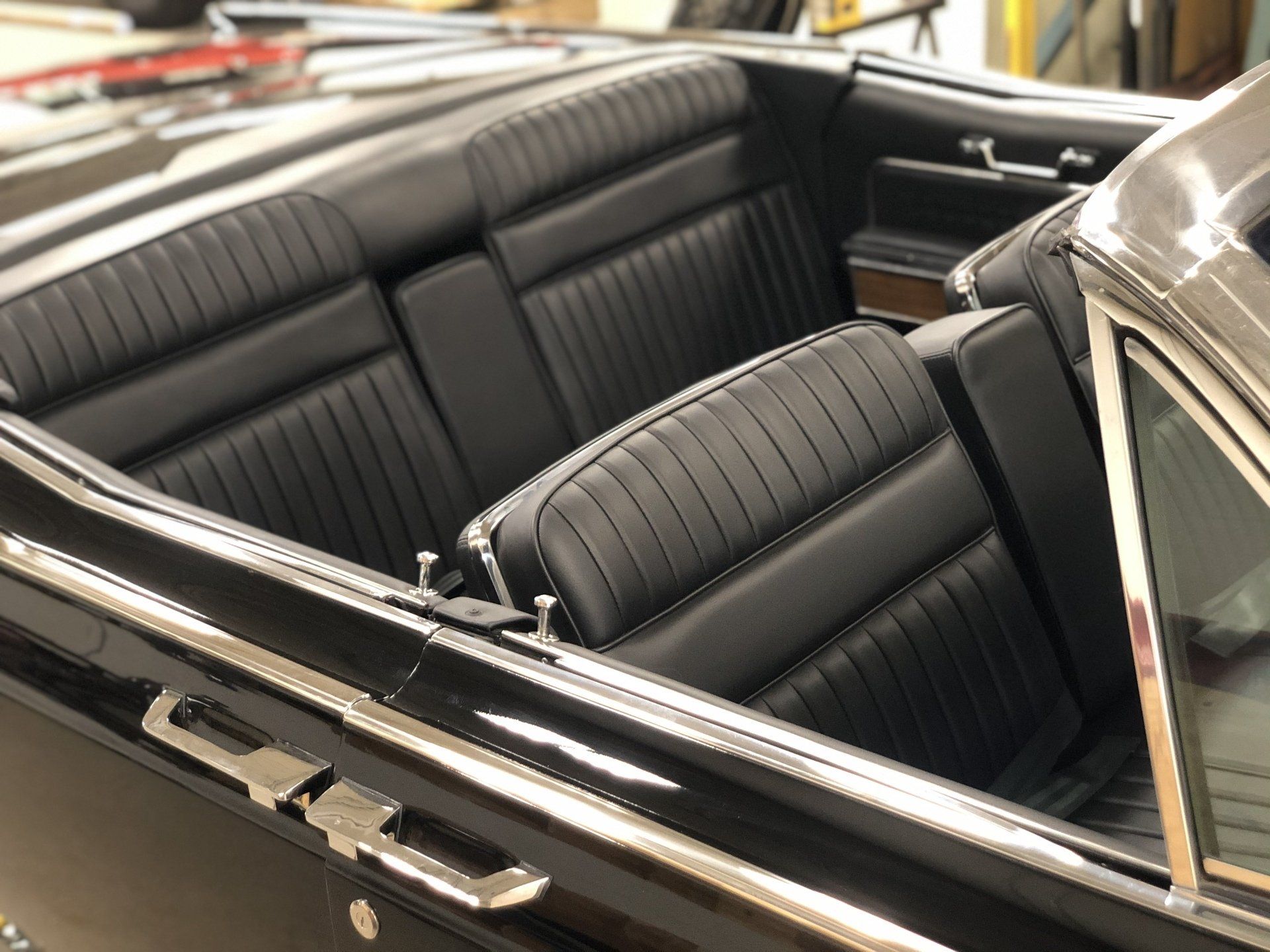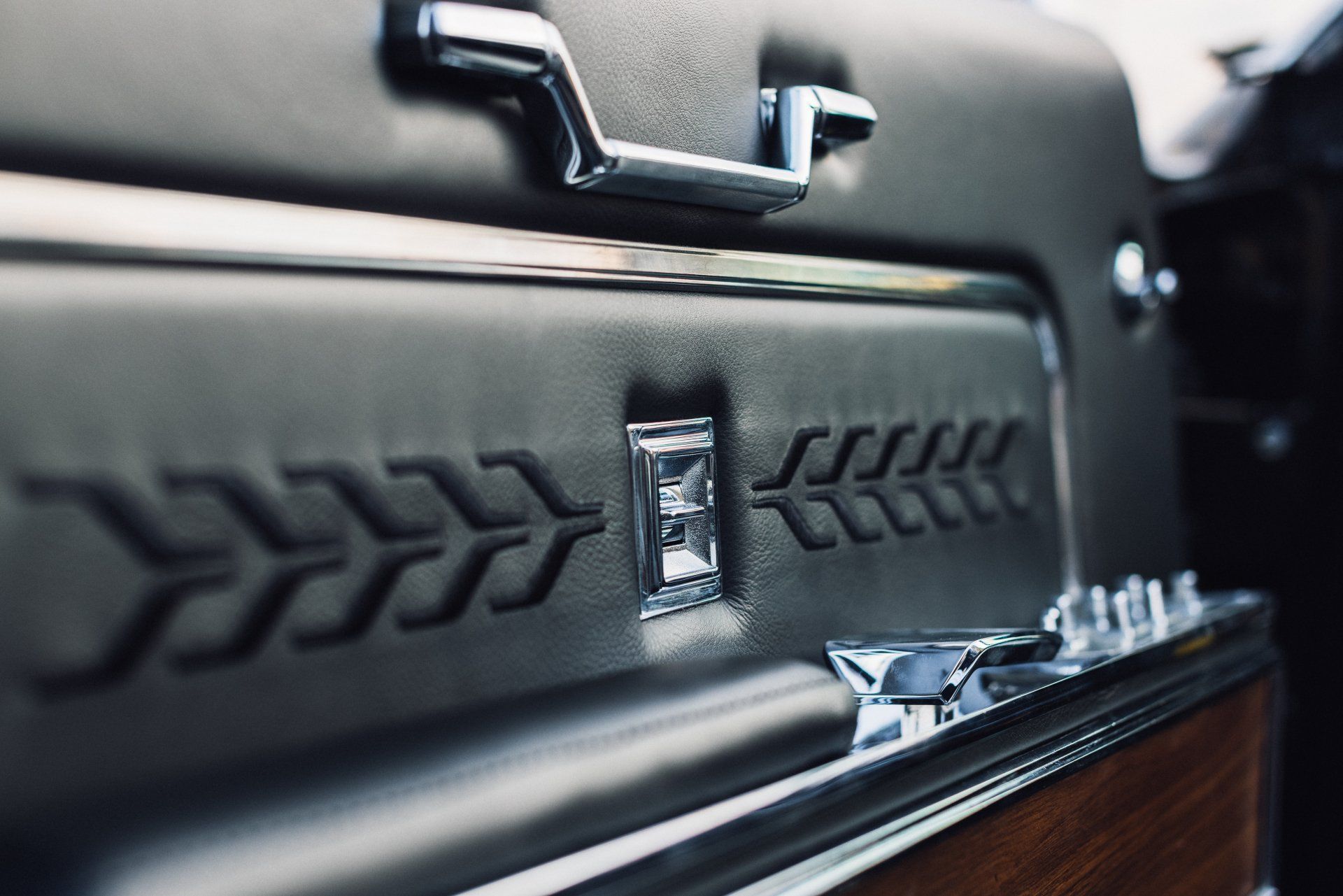 Custom interior using original factory seat design and upgrading materials to leather and custom sewn to fit German Square Weave carpet