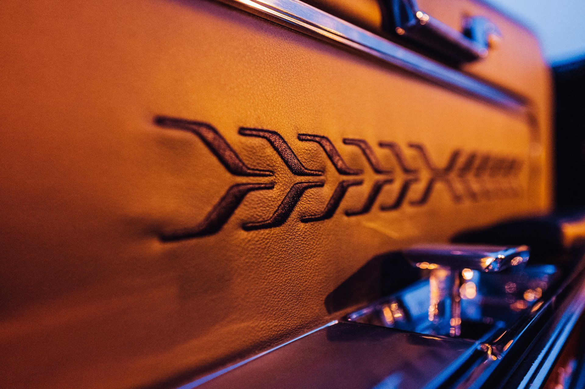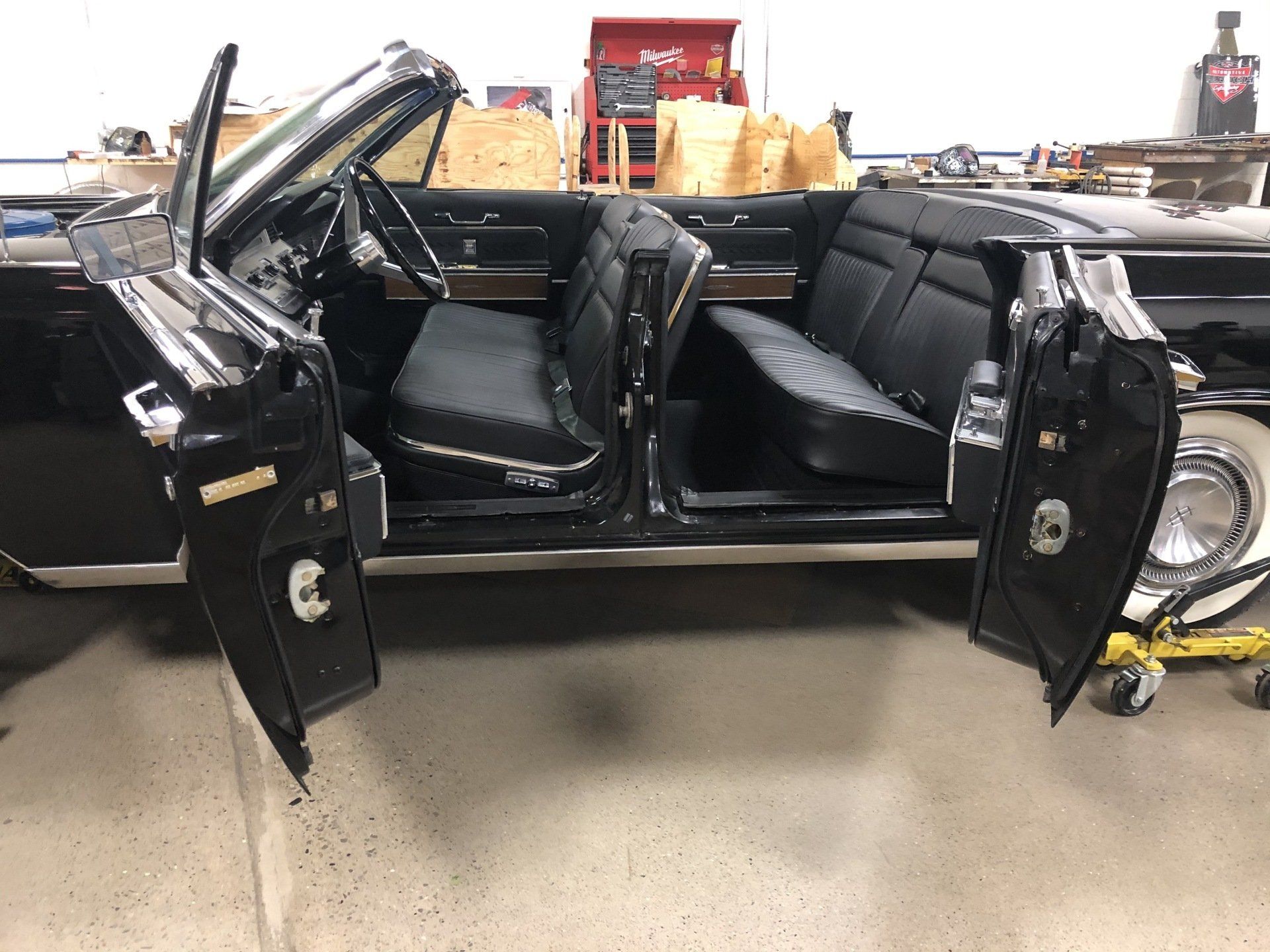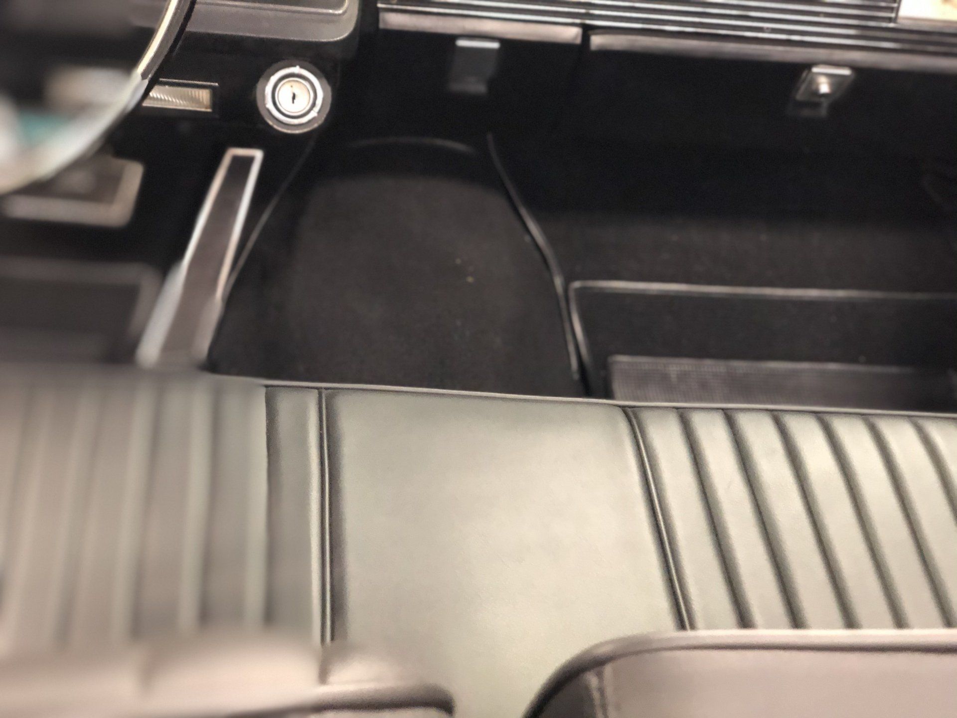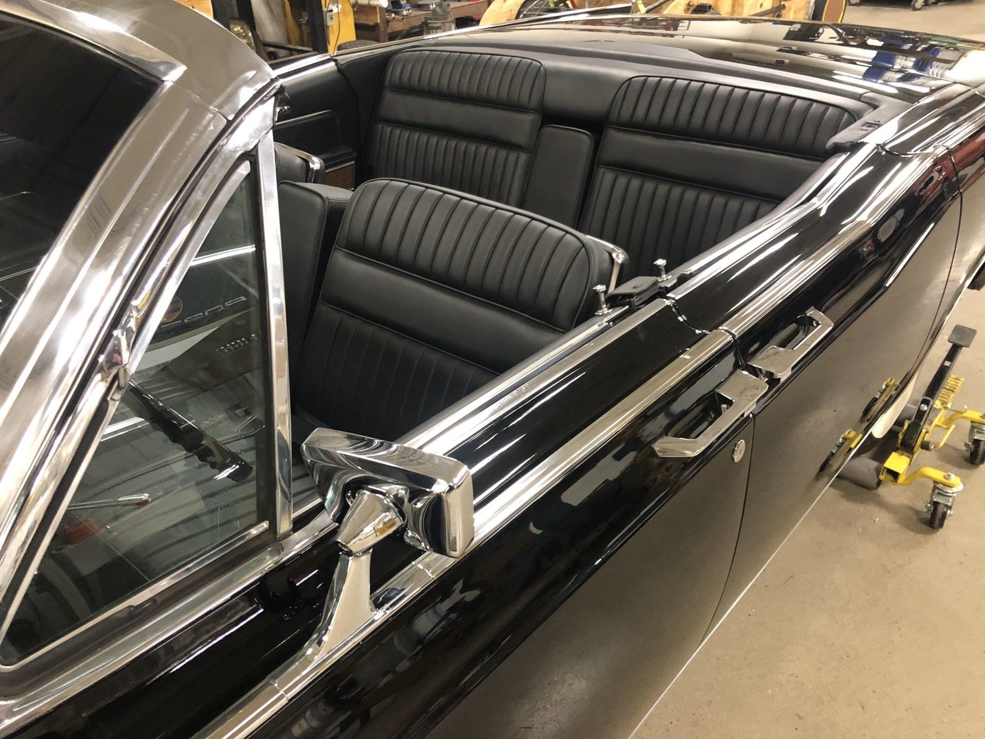 Custom interior using original factory seat design and upgrading materials to leather and custom sewn to fit German Square Weave carpet