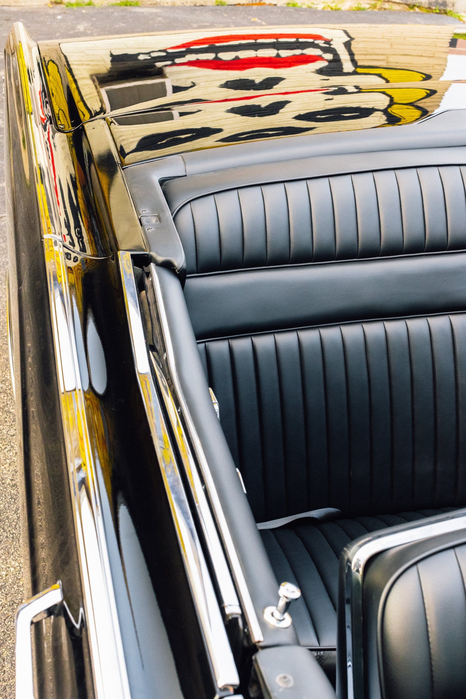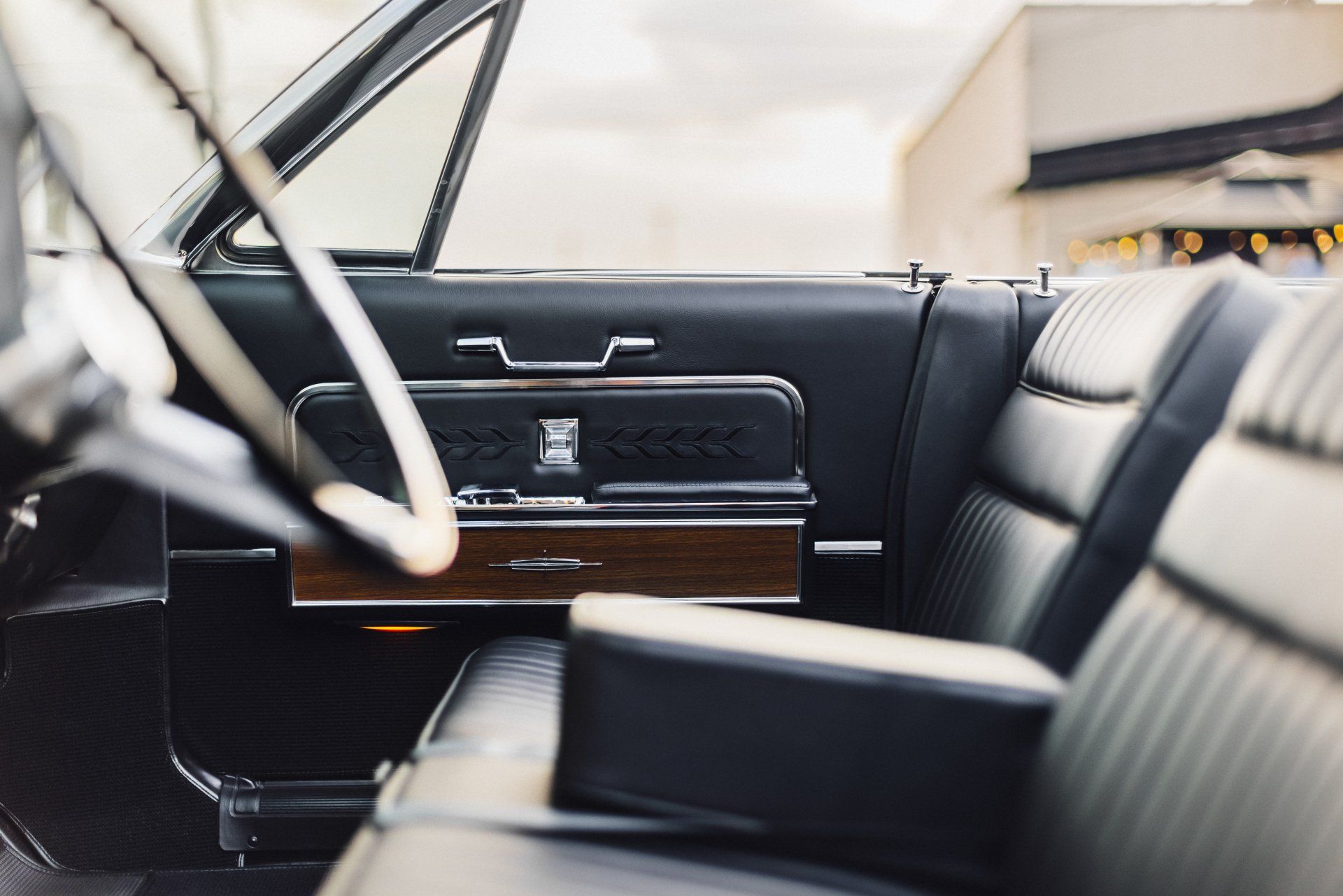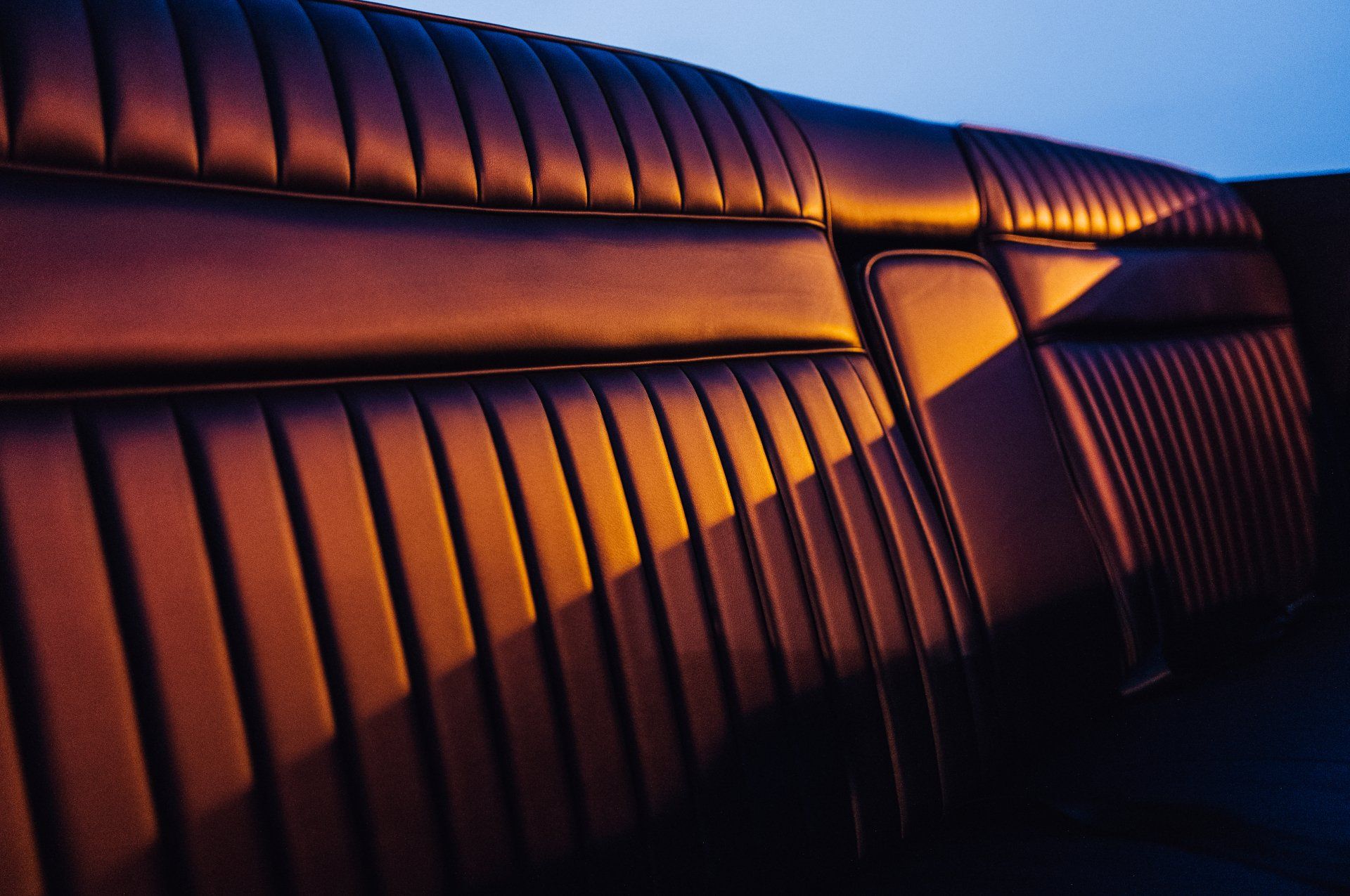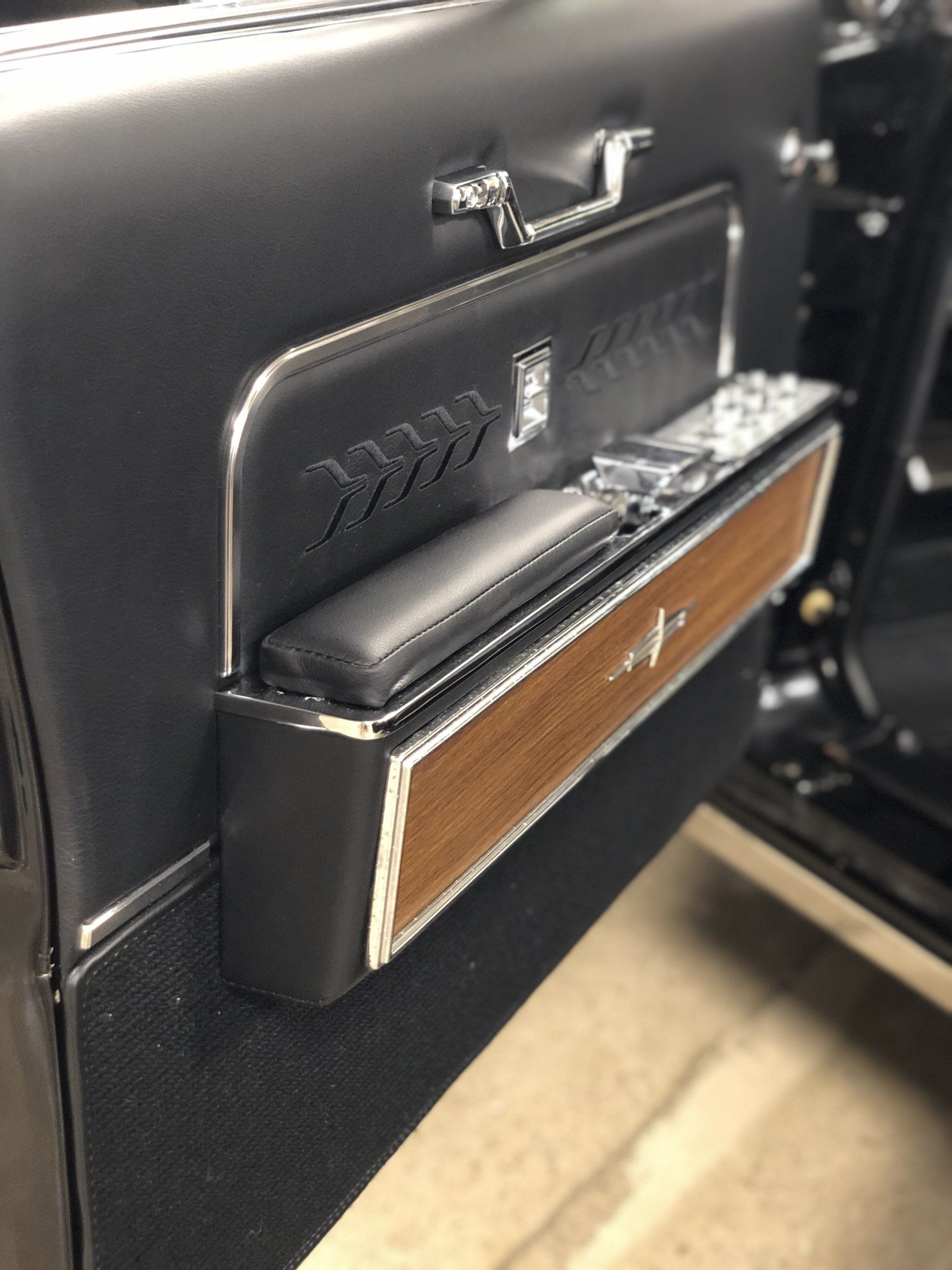 Custom interior using original factory seat design and upgrading materials to leather and custom sewn to fit German Square Weave carpet