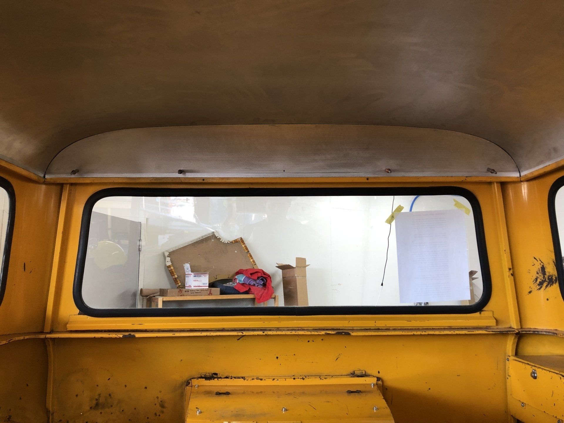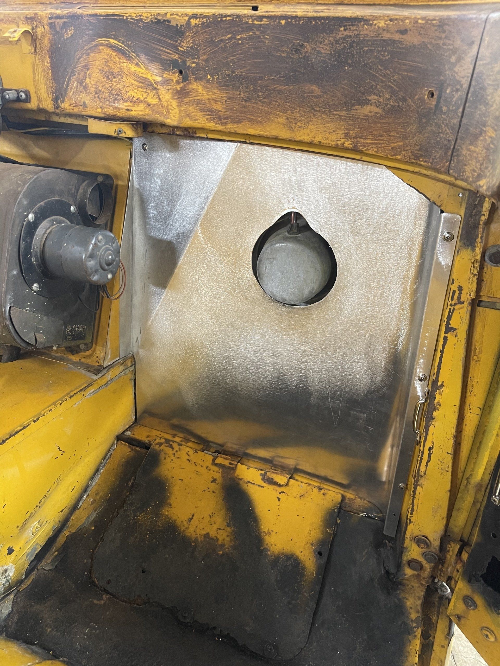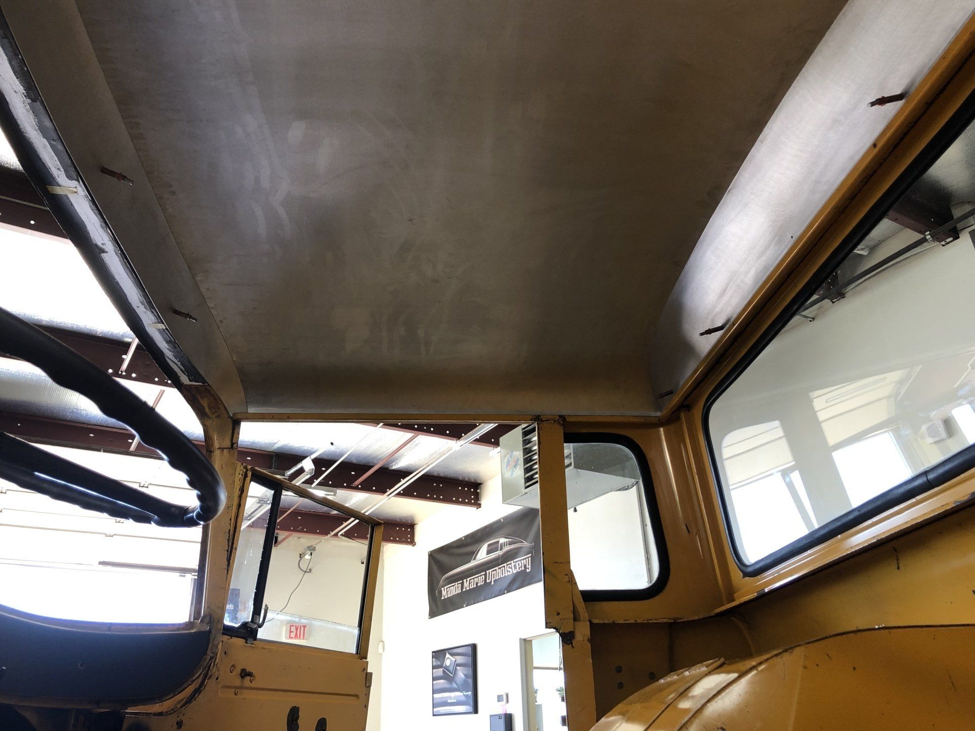 Headliner and firewall panels custom fabricated out of aluminum.